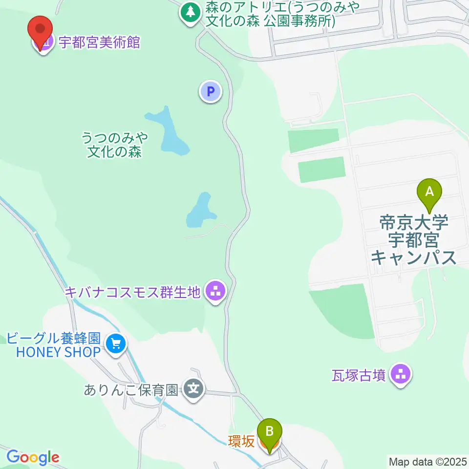 宇都宮美術館周辺のファミレス・ファーストフード一覧地図