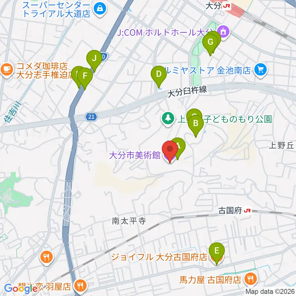 大分市美術館周辺のファミレス・ファーストフード一覧地図