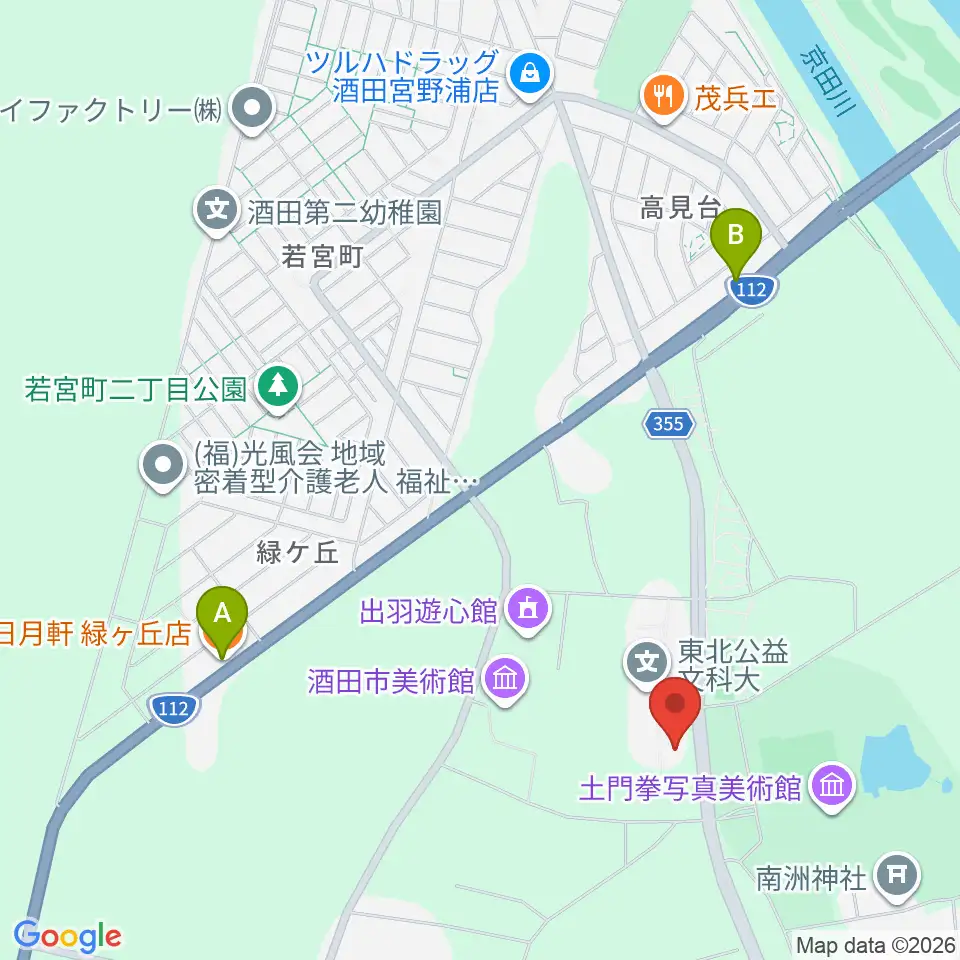 酒田市公益ホール周辺のファミレス・ファーストフード一覧地図