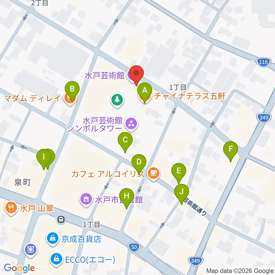 水戸芸術館 現代美術ギャラリー周辺のファミレス・ファーストフード一覧地図