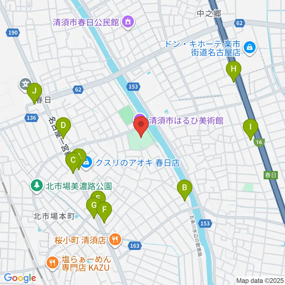 清須市はるひ美術館周辺のファミレス・ファーストフード一覧地図