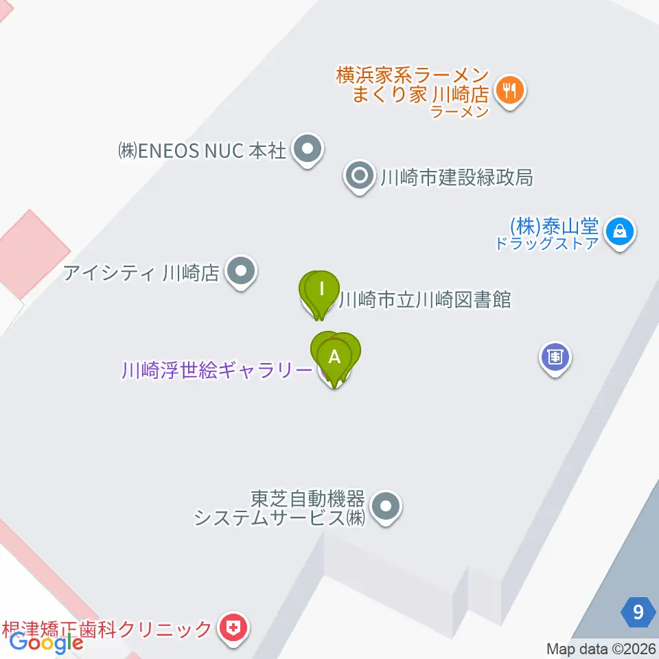 川崎浮世絵ギャラリー周辺のファミレス・ファーストフード一覧地図