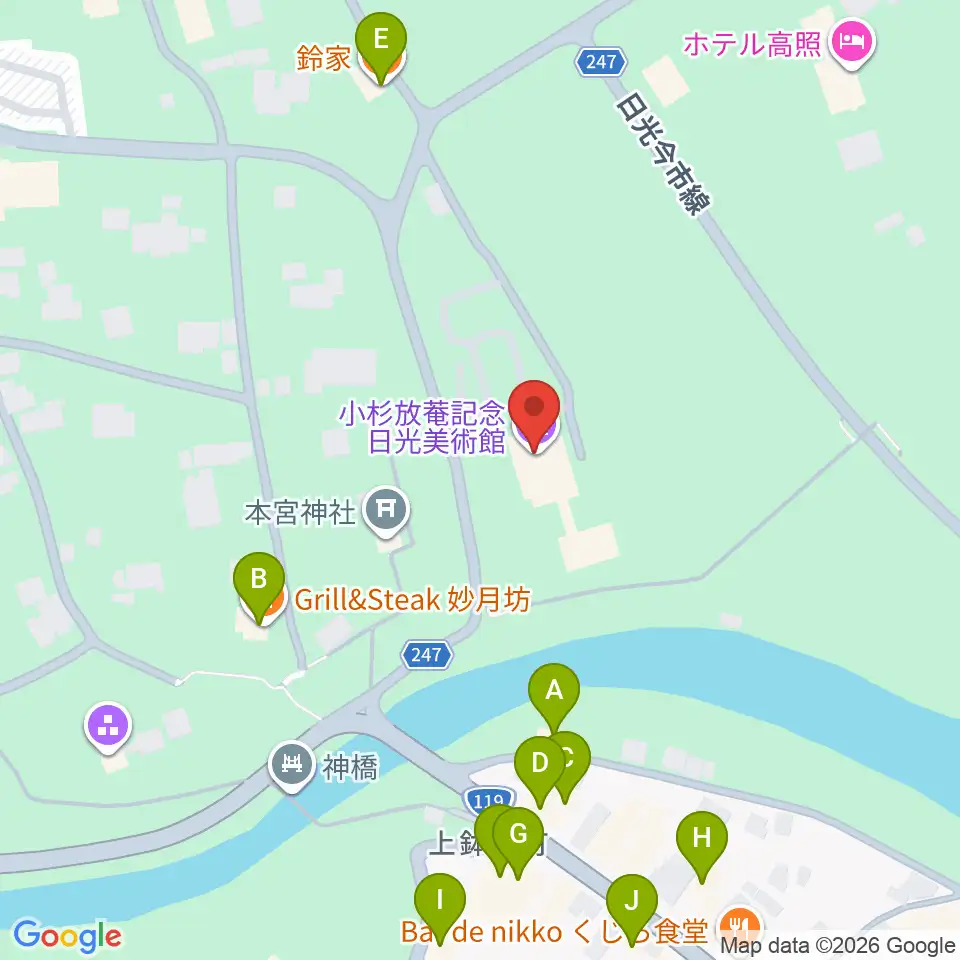 小杉放菴記念美術館周辺のファミレス・ファーストフード一覧地図