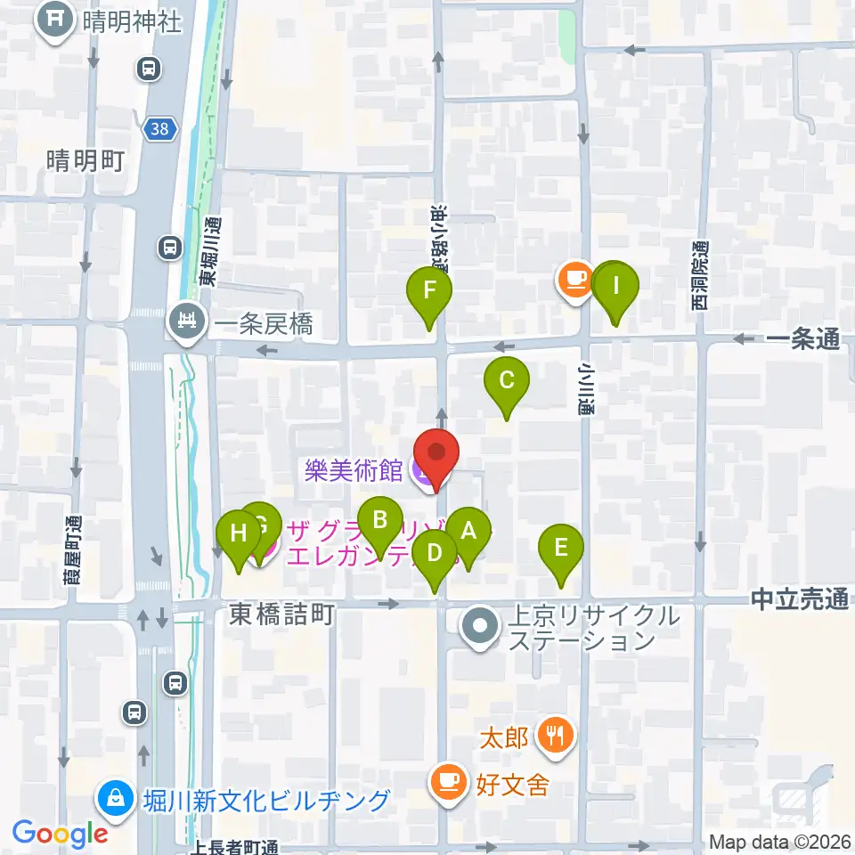 樂美術館周辺のファミレス・ファーストフード一覧地図