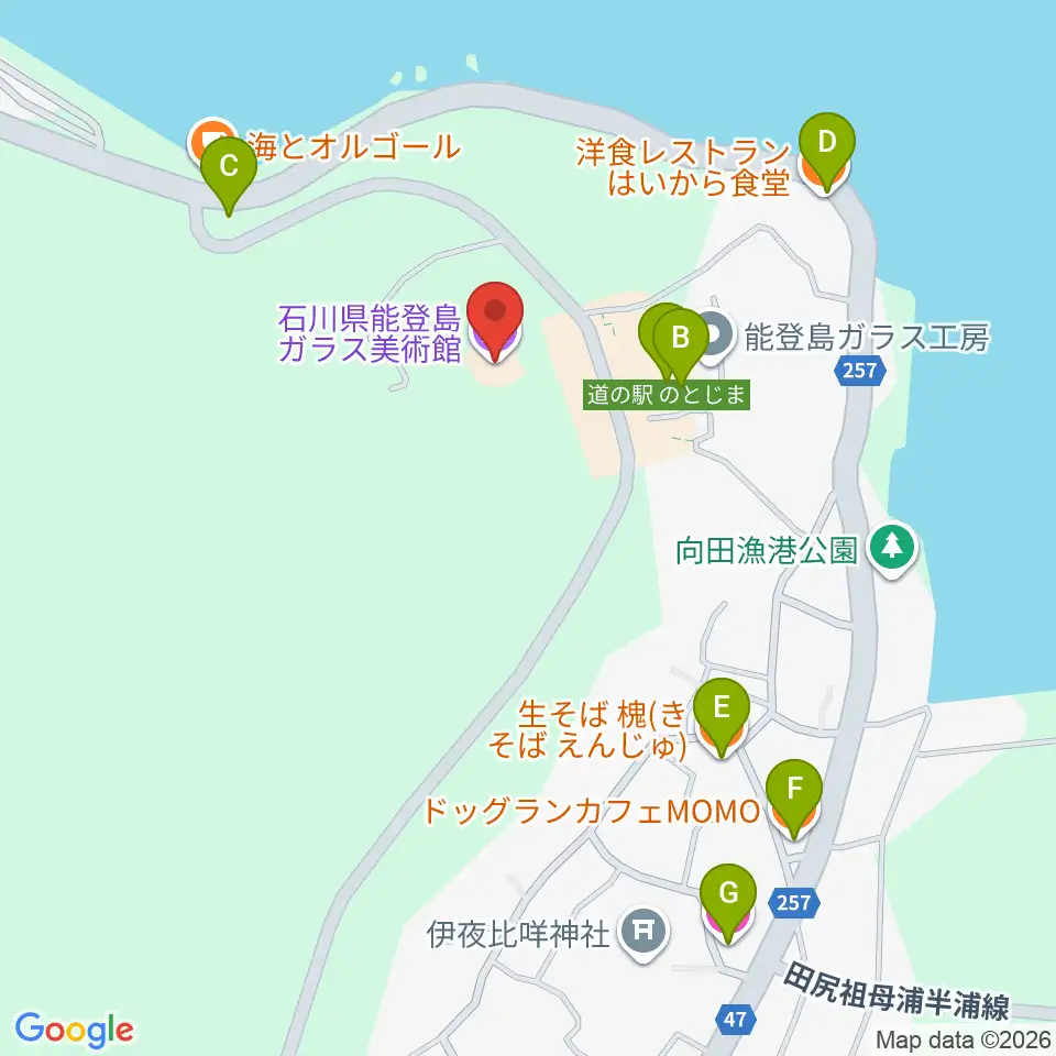 石川県能登島ガラス美術館周辺のファミレス・ファーストフード一覧地図