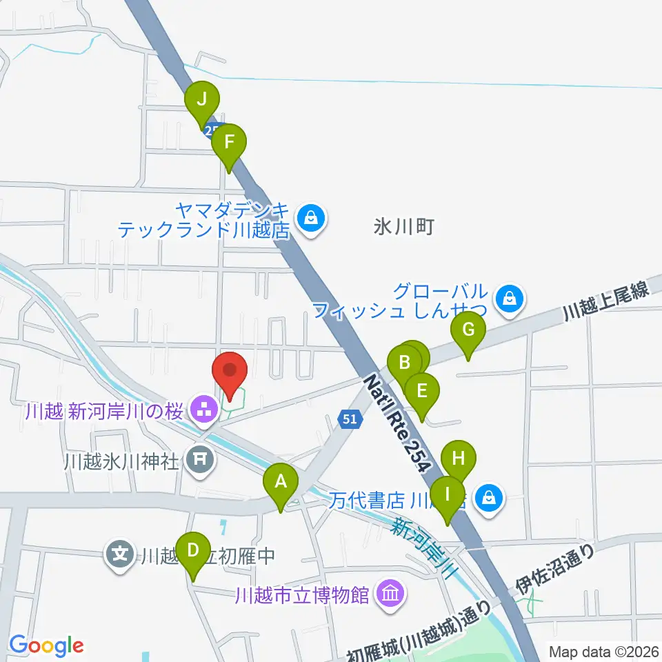 ヤオコー川越美術館(三栖右嗣記念館)周辺のファミレス・ファーストフード一覧地図