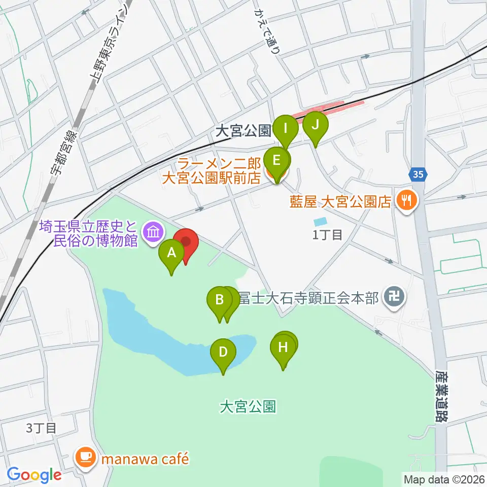 埼玉県立歴史と民俗の博物館周辺のファミレス・ファーストフード一覧地図