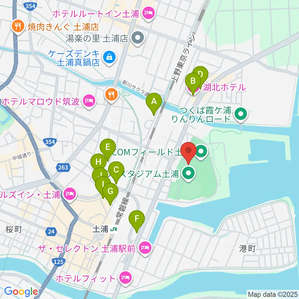 J:COMフィールド土浦周辺のファミレス・ファーストフード一覧地図