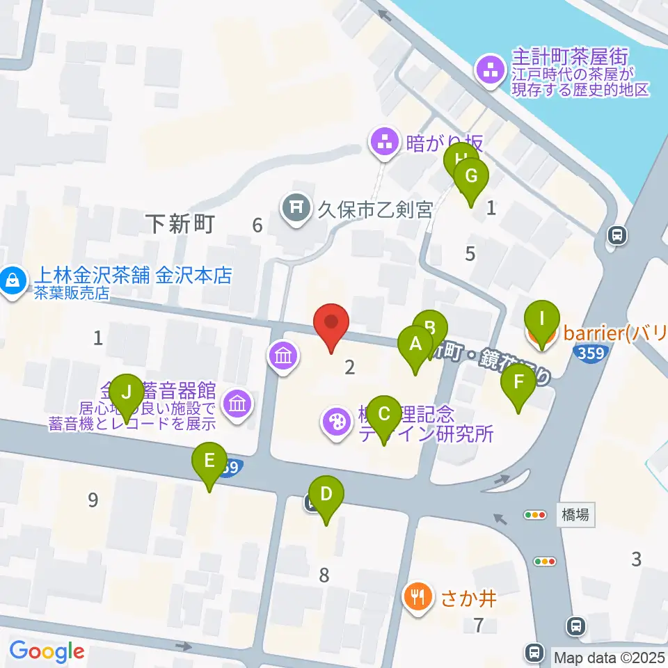 泉鏡花記念館周辺のファミレス・ファーストフード一覧地図