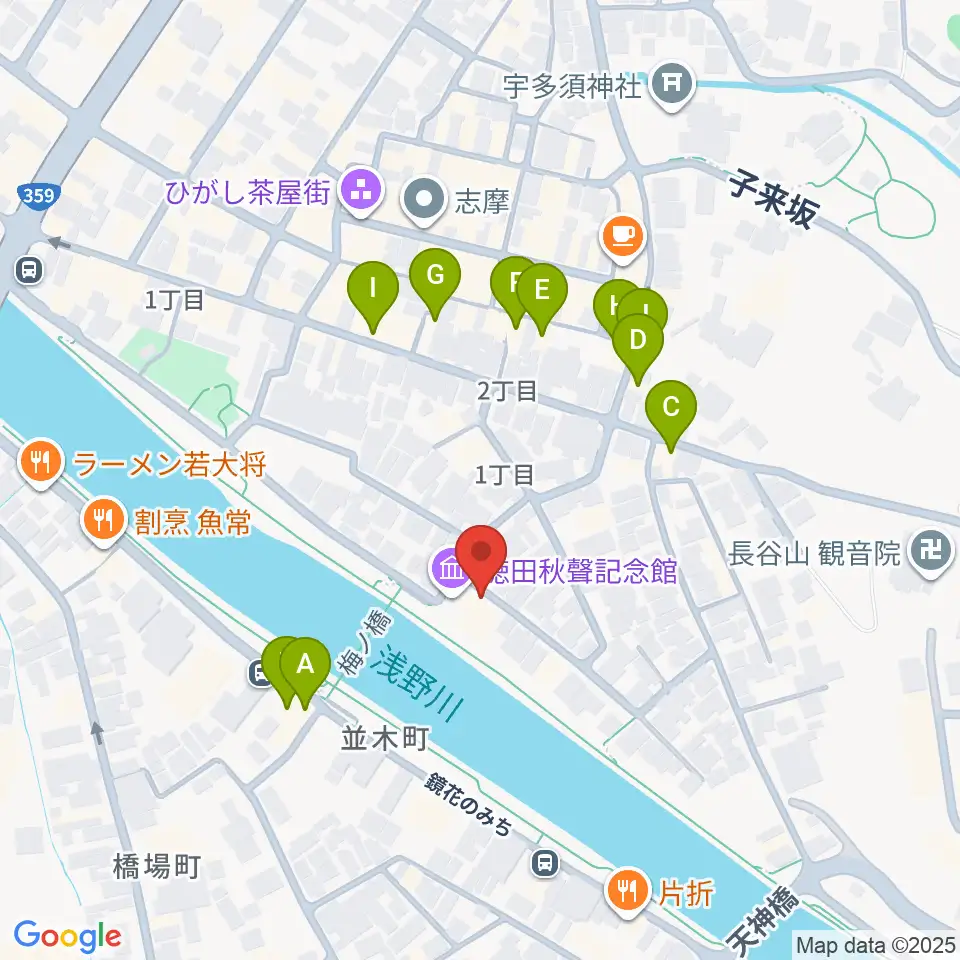 徳田秋聲記念館周辺のファミレス・ファーストフード一覧地図