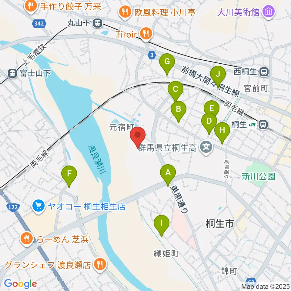 森エンジニアリング桐生スタジアム周辺のファミレス・ファーストフード一覧地図