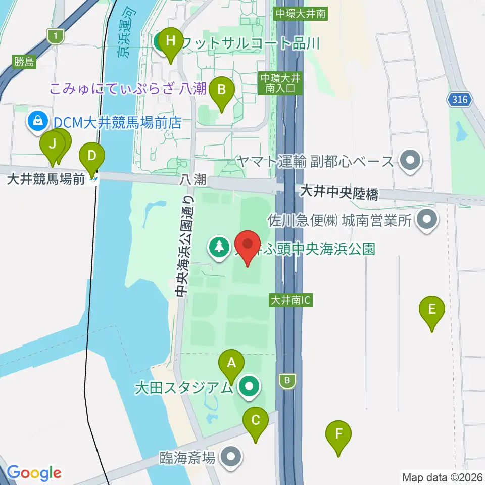 大井ホッケー競技場周辺のファミレス・ファーストフード一覧地図