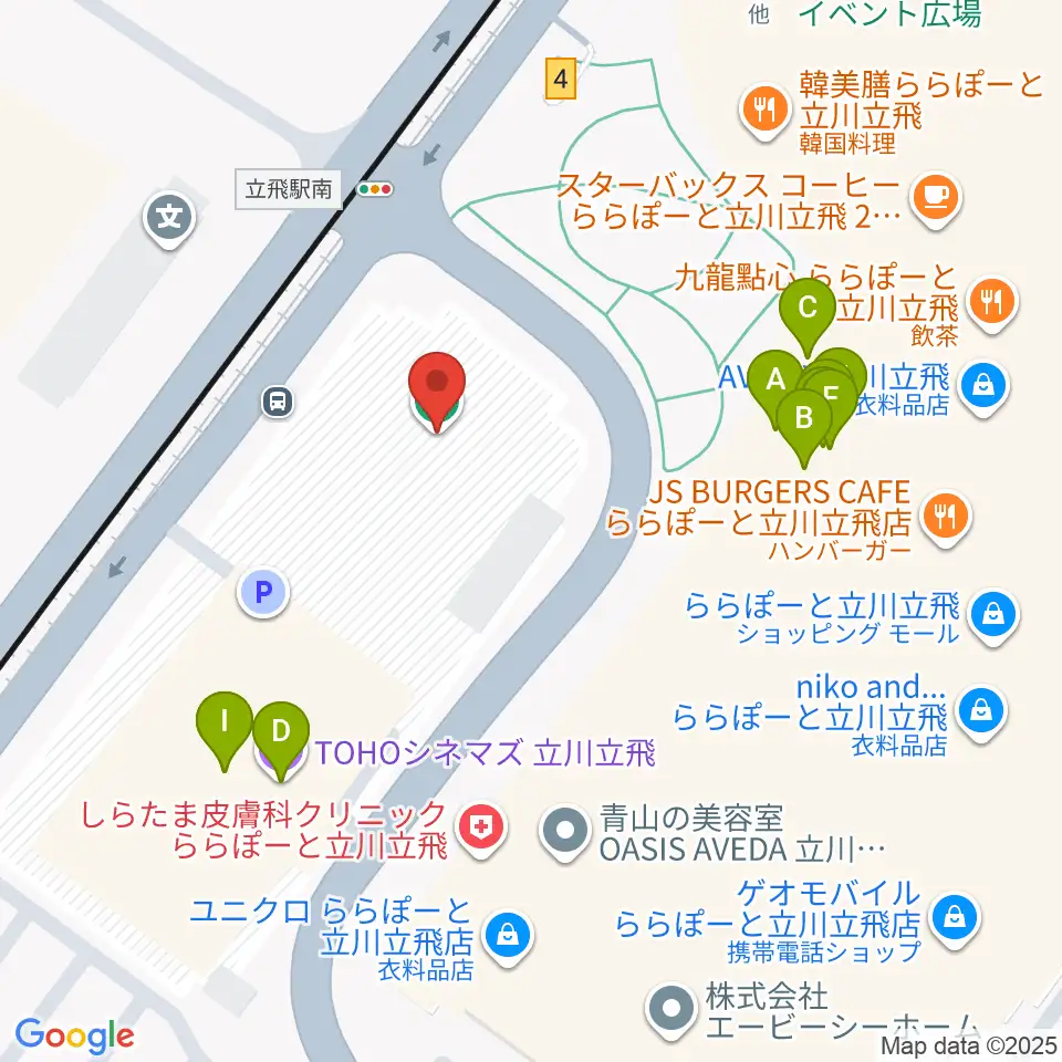 MIFAフットボールパーク立川周辺のファミレス・ファーストフード一覧地図