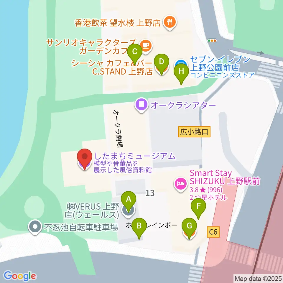 したまちミュージアム周辺のファミレス・ファーストフード一覧地図
