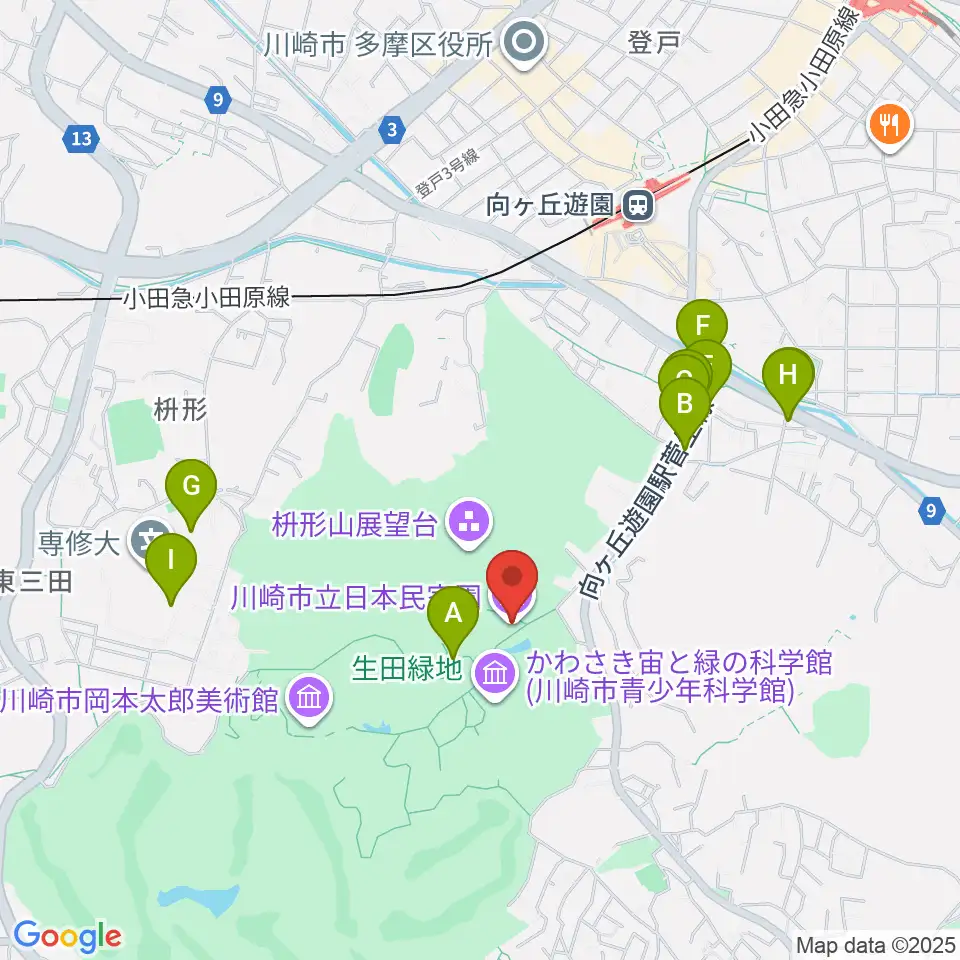 川崎市立日本民家園周辺のファミレス・ファーストフード一覧地図