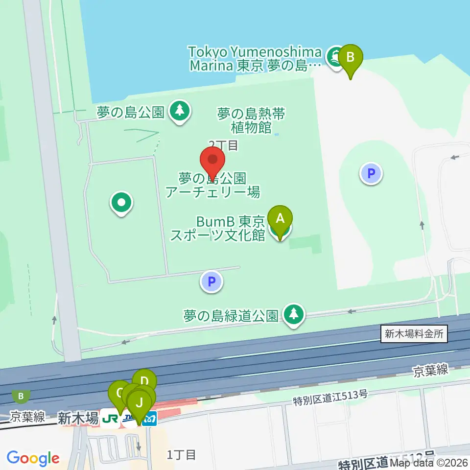 夢の島公園アーチェリー場周辺のファミレス・ファーストフード一覧地図