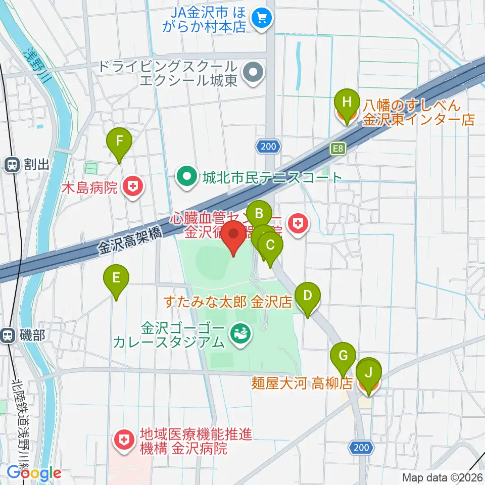 金沢市民野球場周辺のファミレス・ファーストフード一覧地図