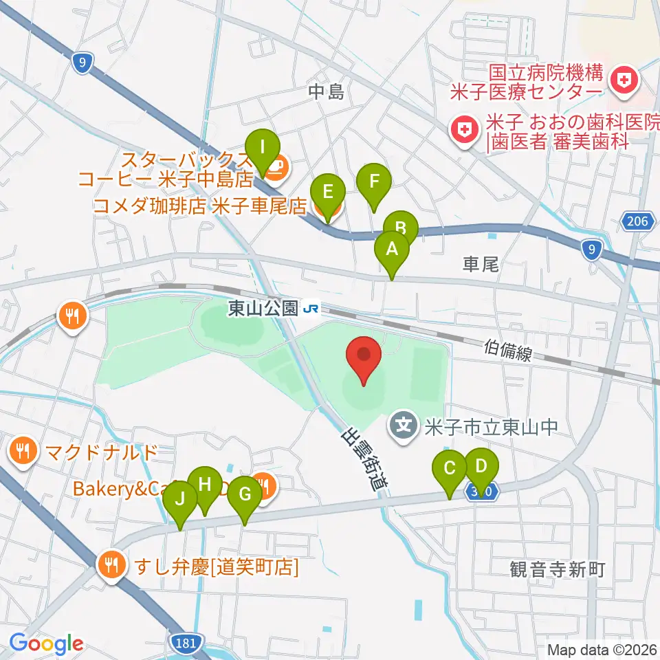 どらドラパーク米子市民球場周辺のファミレス・ファーストフード一覧地図