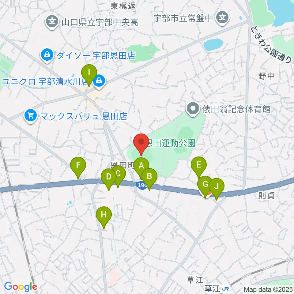 ユーピーアールスタジアム周辺のファミレス・ファーストフード一覧地図