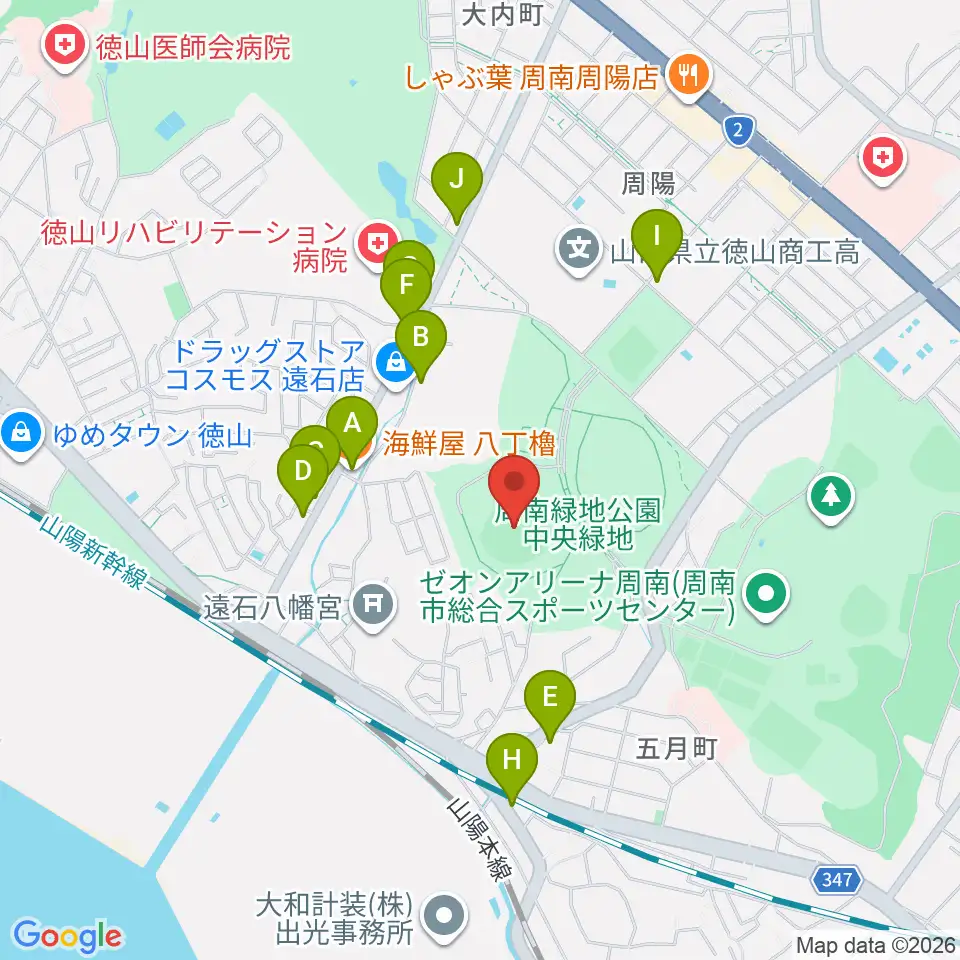 周南市野球場周辺のファミレス・ファーストフード一覧地図
