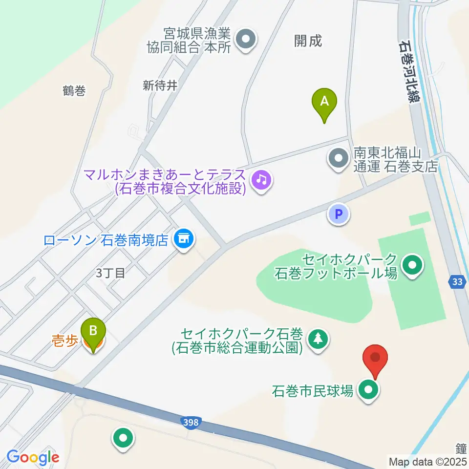 石巻市民球場周辺のファミレス・ファーストフード一覧地図