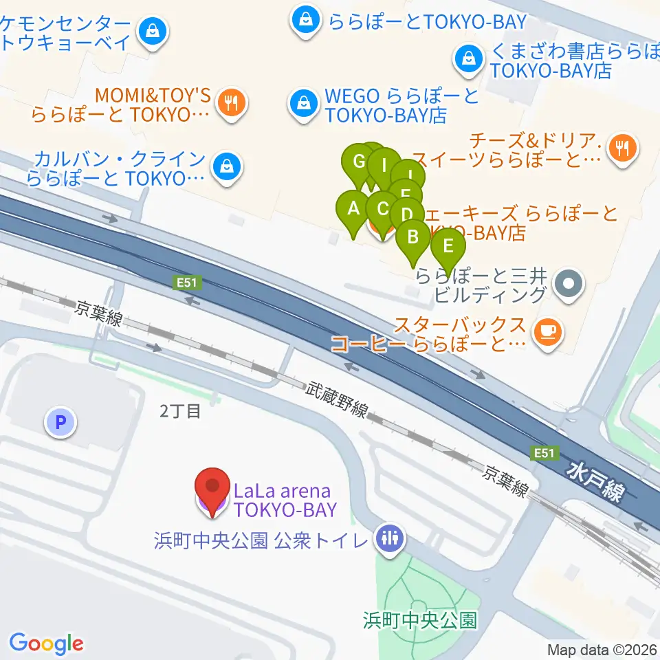 ららアリーナ東京ベイ周辺のファミレス・ファーストフード一覧地図