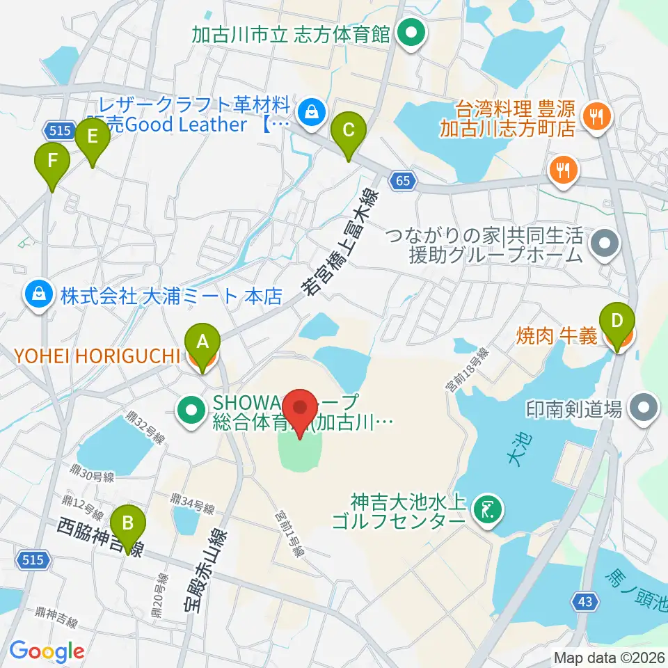 SHOWAグループ陸上競技場周辺のファミレス・ファーストフード一覧地図