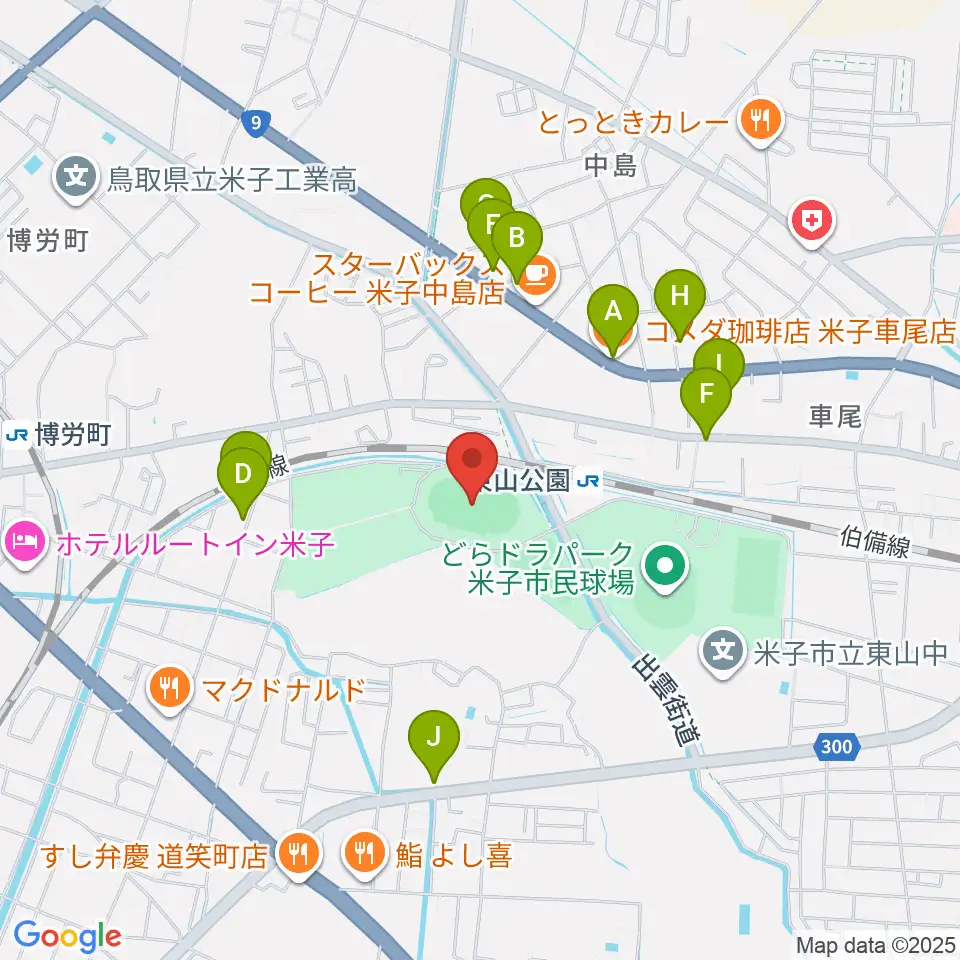 どらドラパーク米子陸上競技場周辺のファミレス・ファーストフード一覧地図