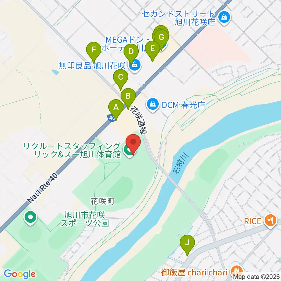 リクルートスタッフィング リック&スー旭川体育館周辺のファミレス・ファーストフード一覧地図