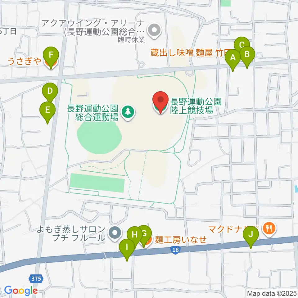 長野市営陸上競技場周辺のファミレス・ファーストフード一覧地図