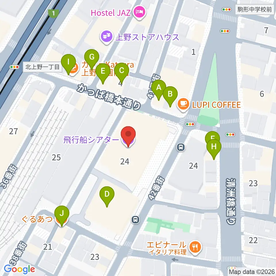 飛行船シアター周辺のファミレス・ファーストフード一覧地図