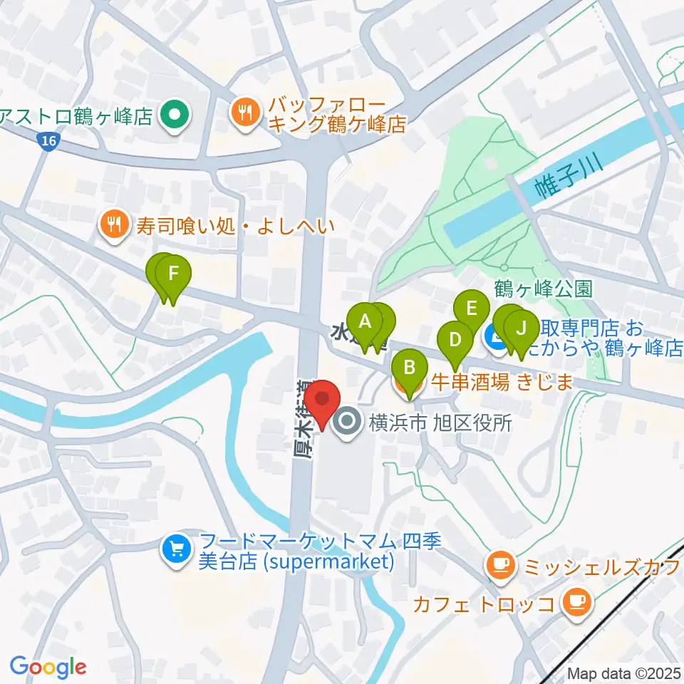 横浜市旭公会堂周辺のファミレス・ファーストフード一覧地図