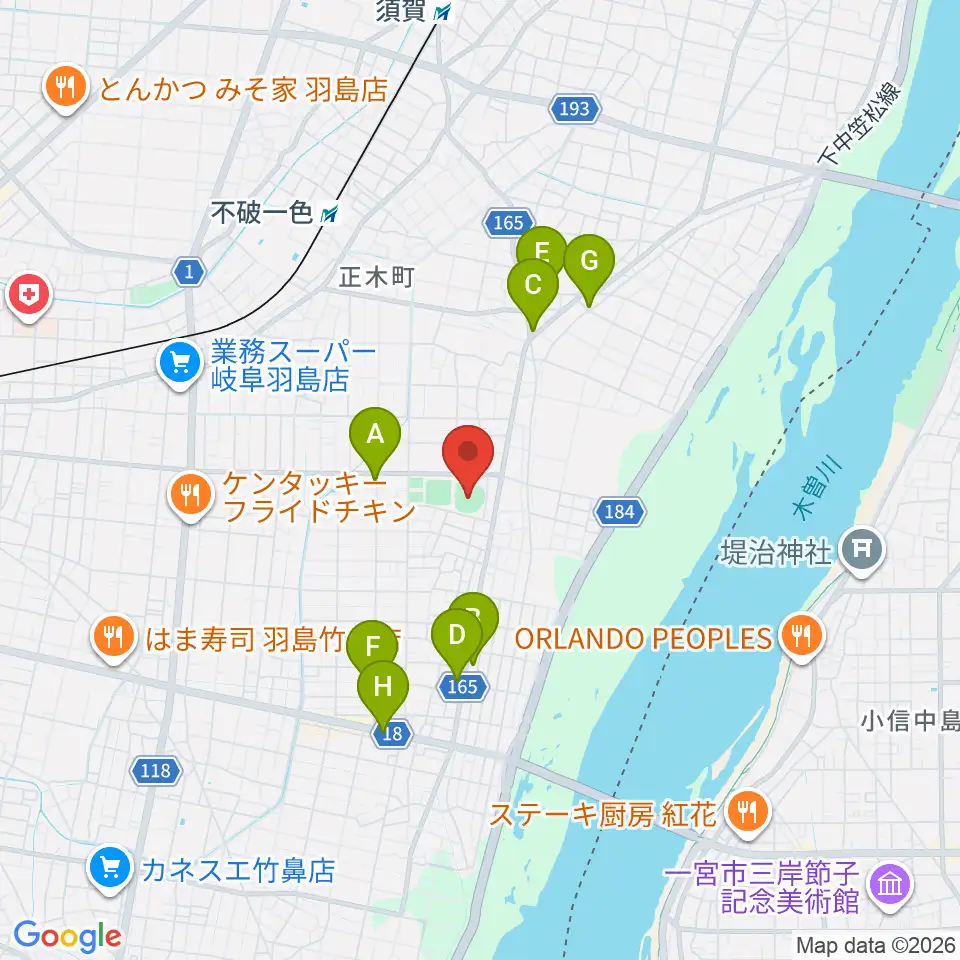 はしま清流スタジアム周辺のファミレス・ファーストフード一覧地図