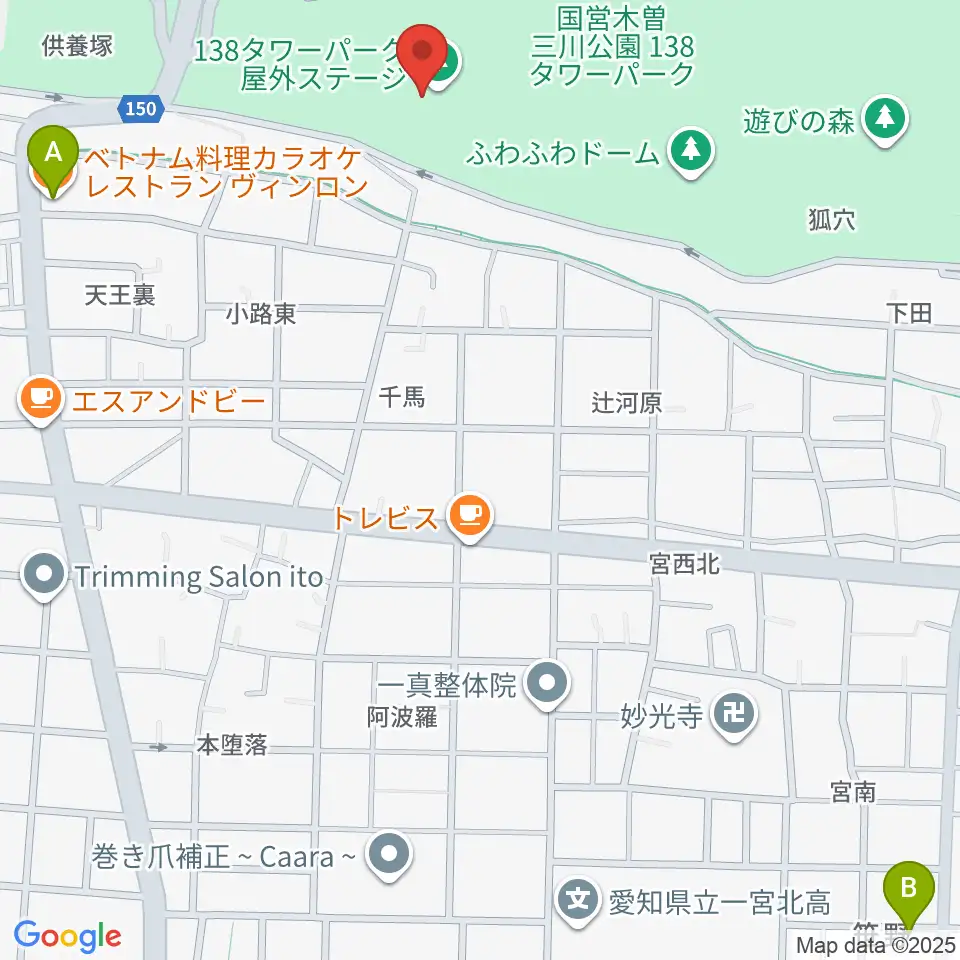 138タワーパーク野外ステージ周辺のファミレス・ファーストフード一覧地図