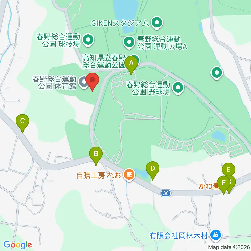 春野総合運動公園体育館周辺のファミレス・ファーストフード一覧地図