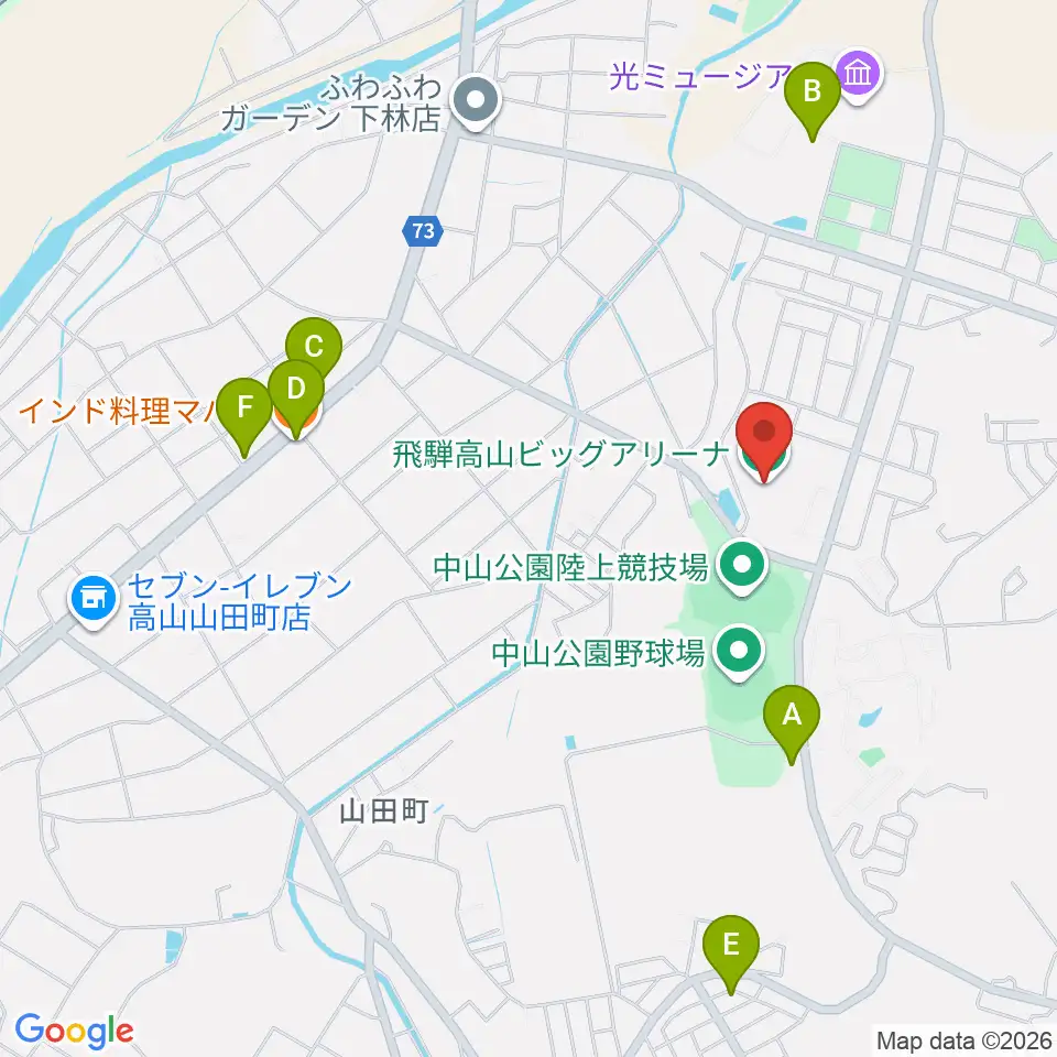飛騨高山ビッグアリーナ周辺のファミレス・ファーストフード一覧地図