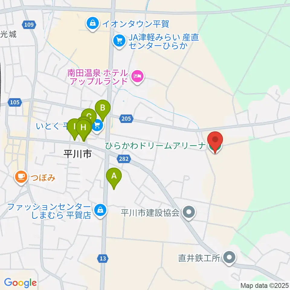 ひらかわドリームアリーナ周辺のファミレス・ファーストフード一覧地図