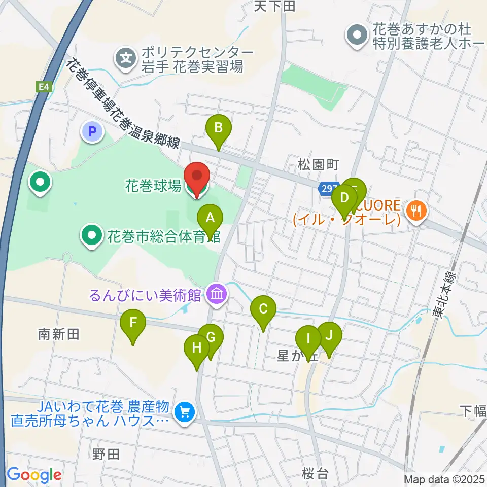 JALスタジアム花巻周辺のファミレス・ファーストフード一覧地図