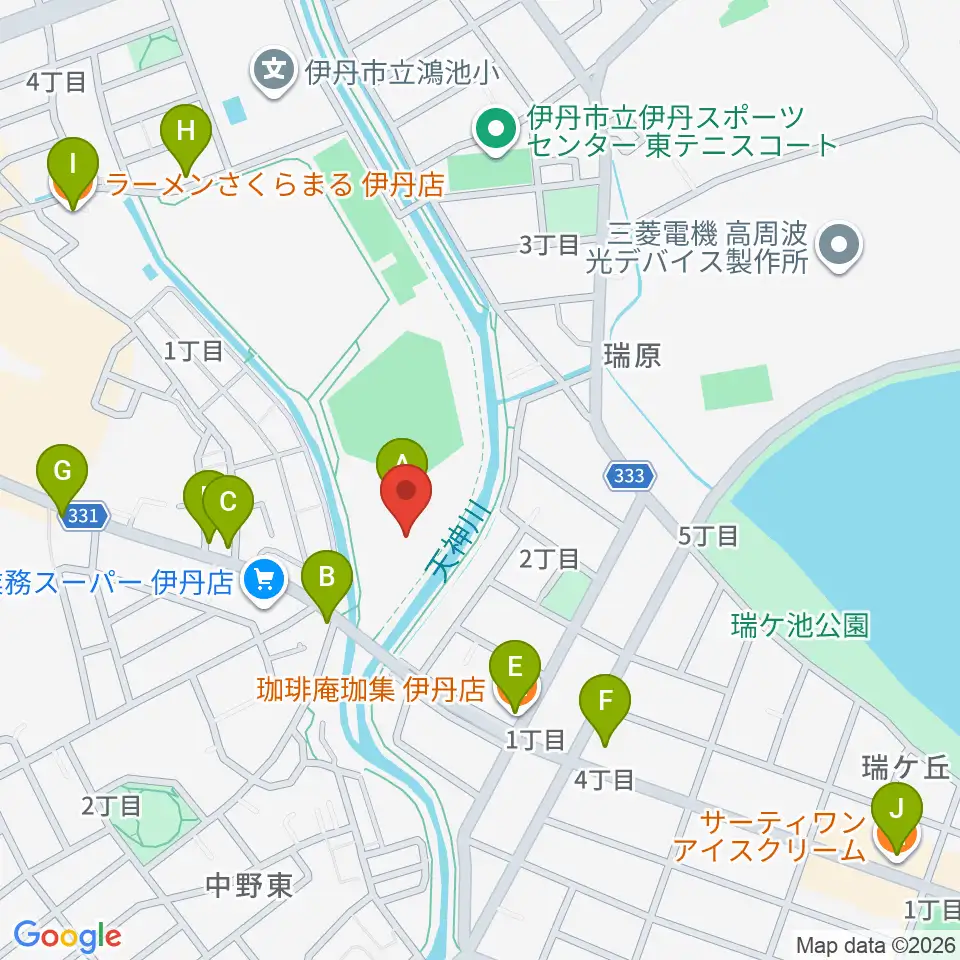 TOYO TIRES伊丹スポーツセンター体育館周辺のファミレス・ファーストフード一覧地図