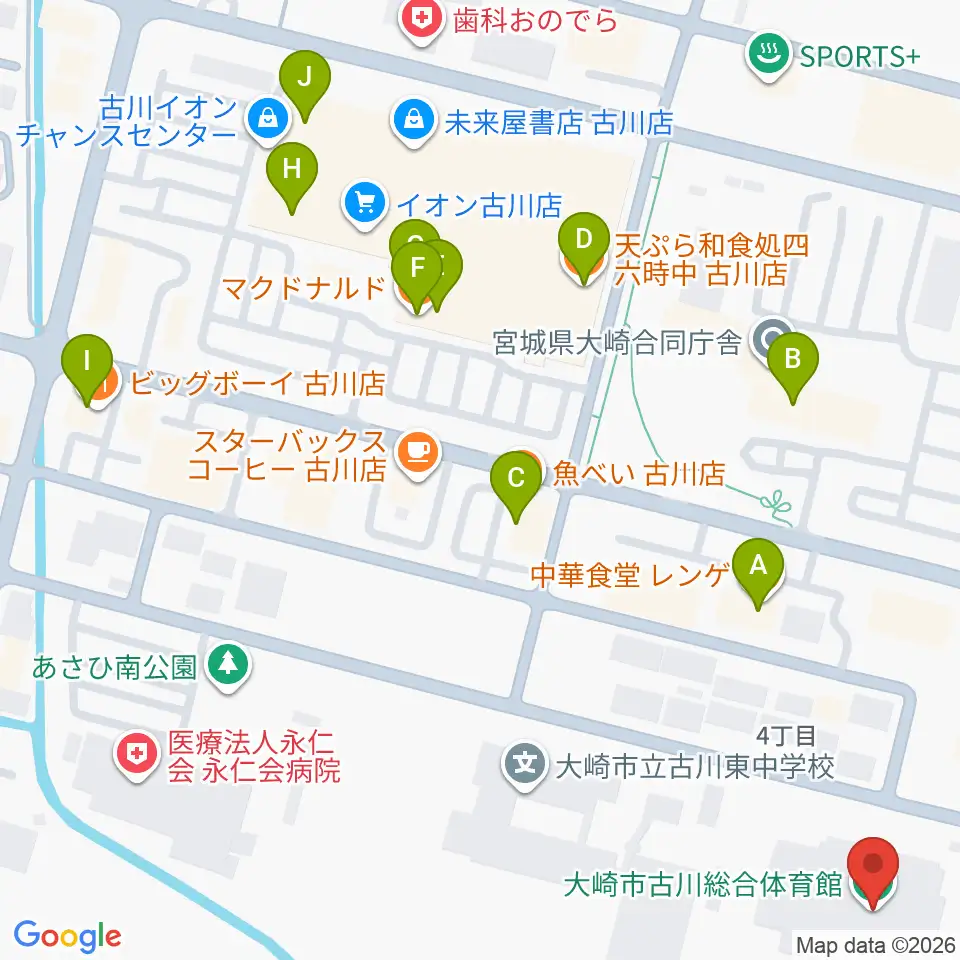 タカカツアリーナ大崎周辺のファミレス・ファーストフード一覧地図
