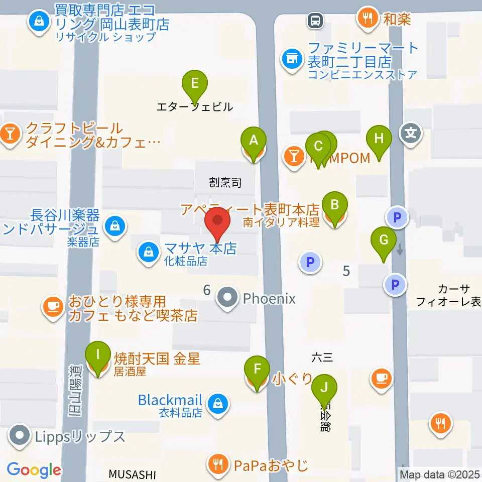長谷川楽器ウインドパサージュ周辺のファミレス・ファーストフード一覧地図