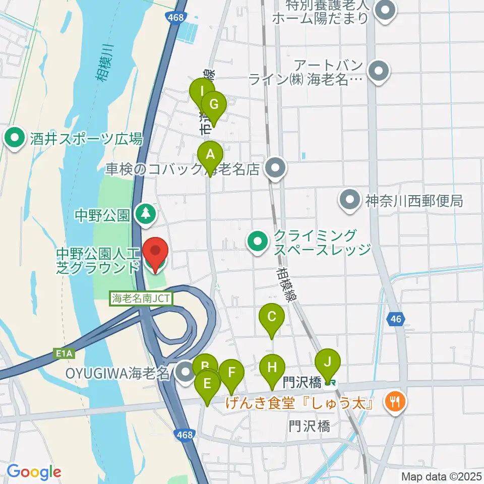 中野公園人工芝グラウンド周辺のファミレス・ファーストフード一覧地図
