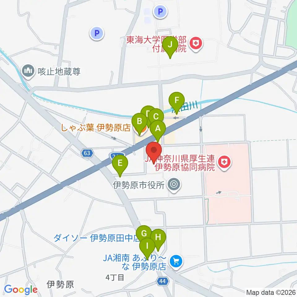 伊勢原市立子ども科学館周辺のファミレス・ファーストフード一覧地図