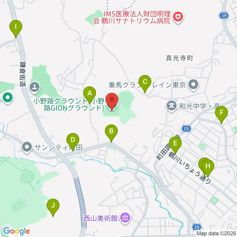 小野路GIONグラウンド周辺のファミレス・ファーストフード一覧地図