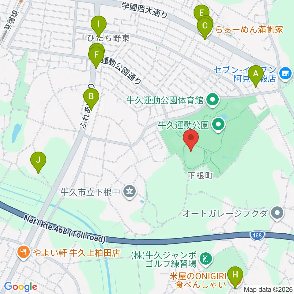 牛久運動公園野球場周辺のファミレス・ファーストフード一覧地図