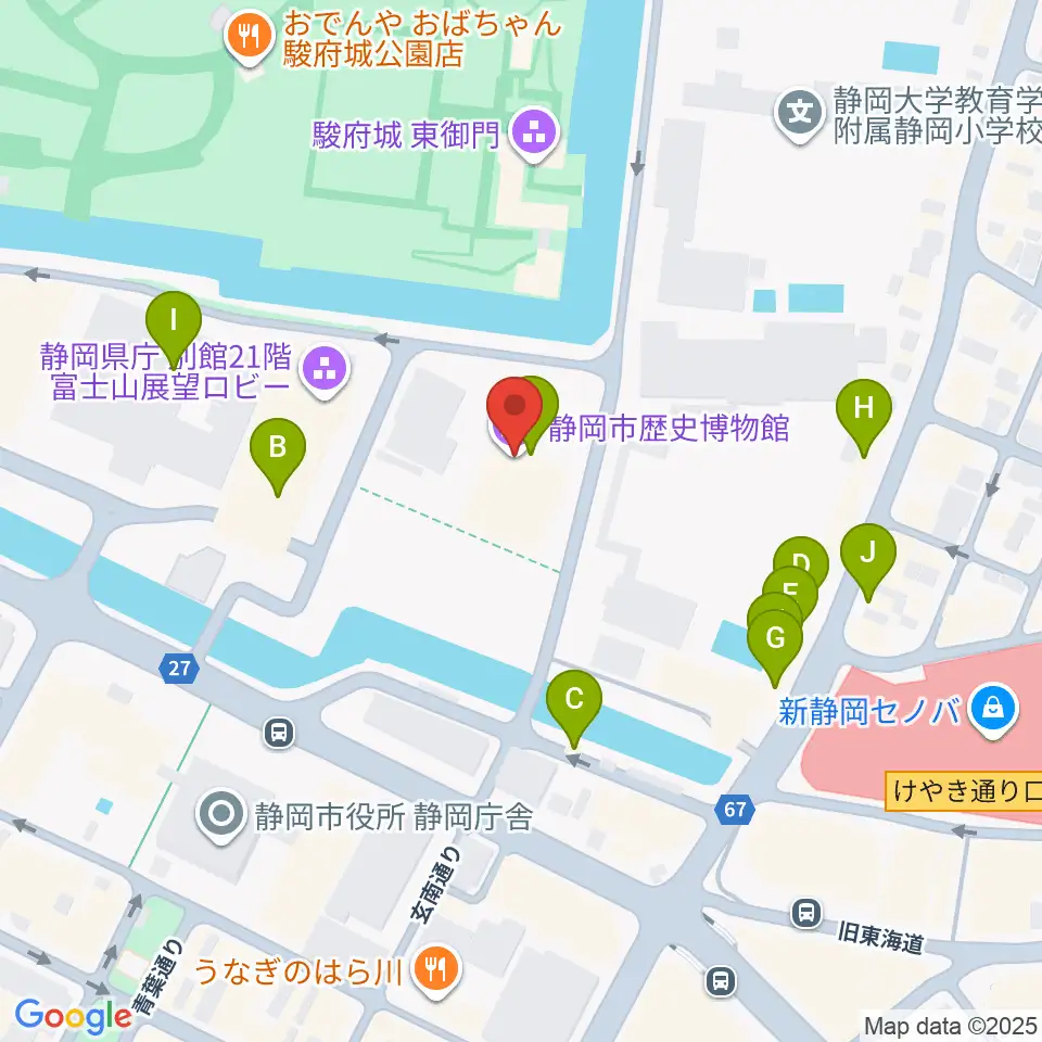 静岡市歴史博物館周辺のファミレス・ファーストフード一覧地図