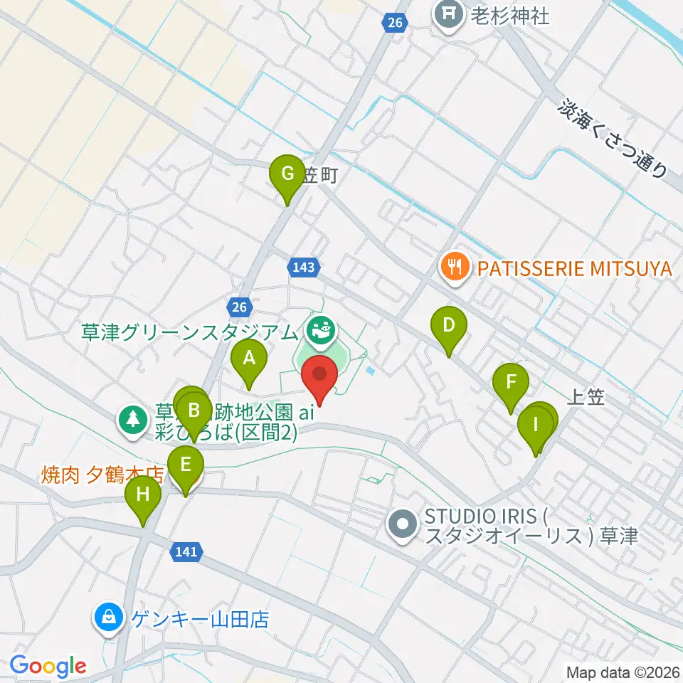 草津市立総合体育館周辺のファミレス・ファーストフード一覧地図