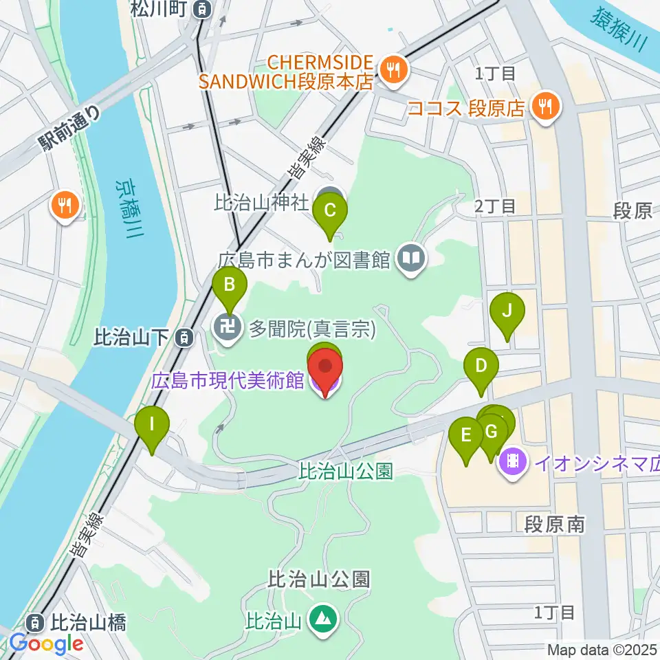 広島市現代美術館周辺のファミレス・ファーストフード一覧地図