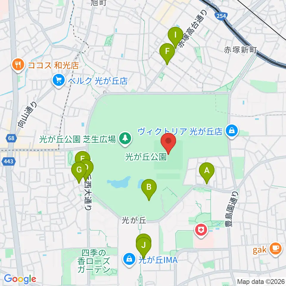 光が丘公園野球場周辺のファミレス・ファーストフード一覧地図