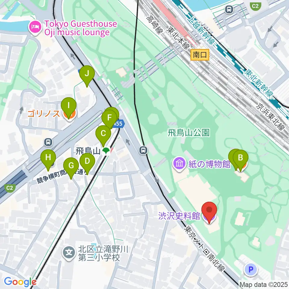 渋沢史料館周辺のファミレス・ファーストフード一覧地図